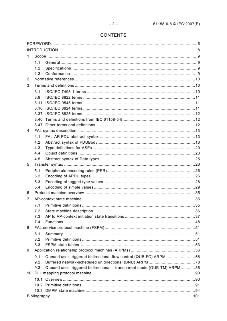 - Abstract syntax and data types: Formal FAL (Fieldbus Application Layer) abstract syntax, PDUBody definitions, ASE (Application Service Element) type definitions and object definitions.