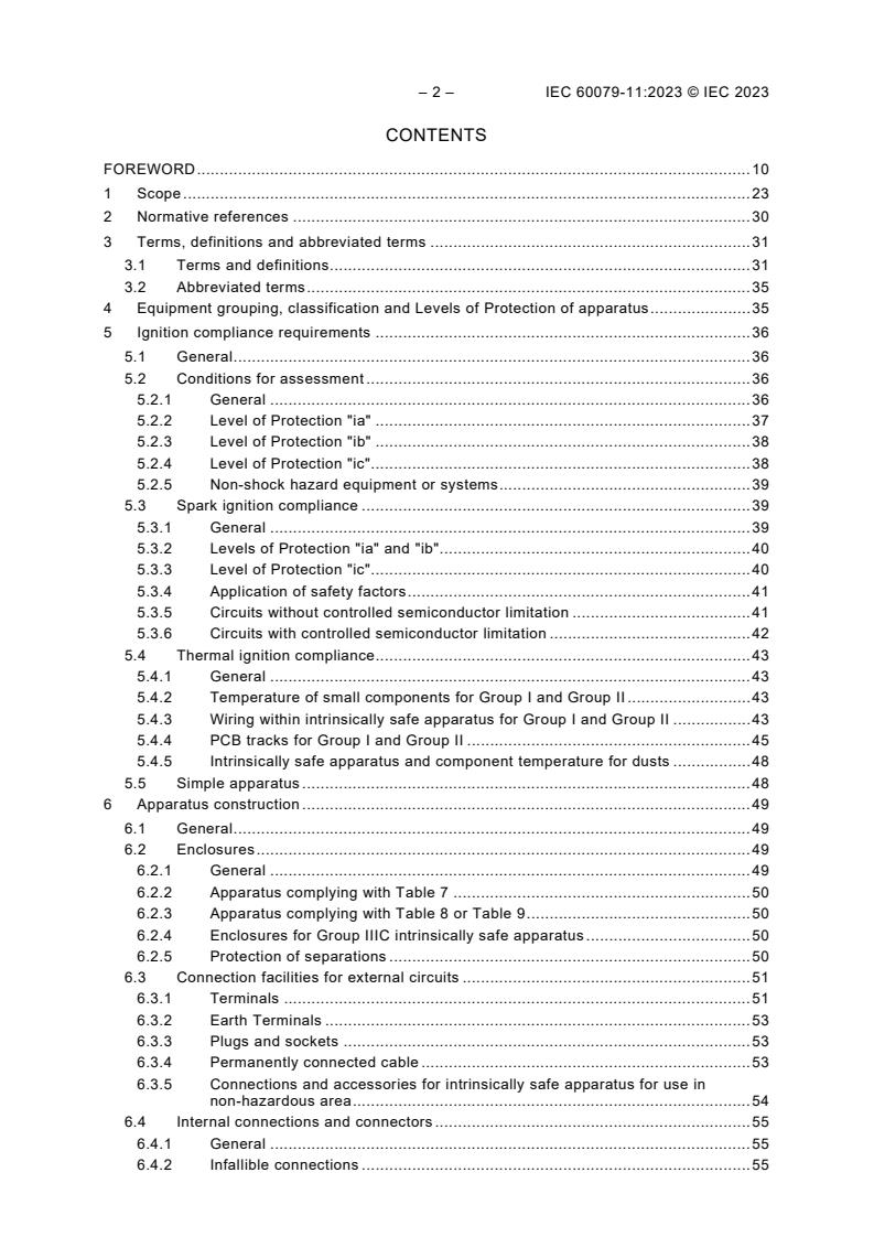 The standard details technical requirements and test methods needed to achieve intrinsic safety ("i"). Major topics include: