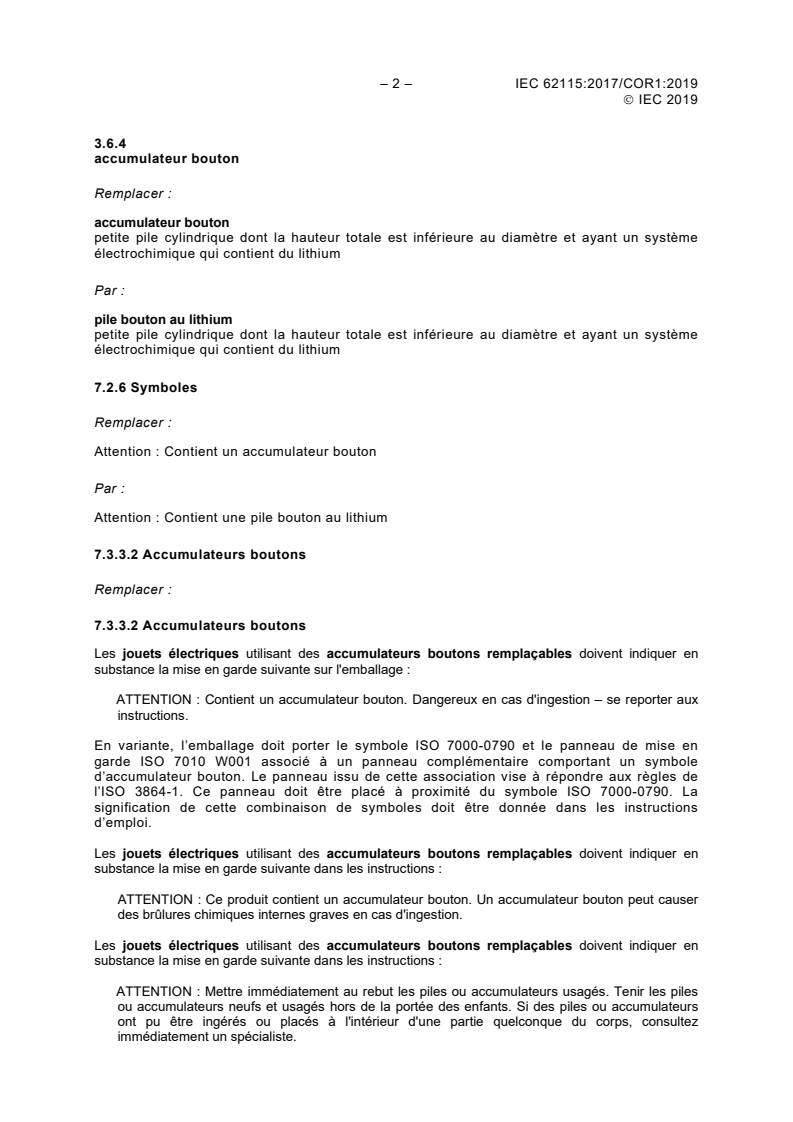 Corrigendum 1 - Jouets électriques - Sécurité