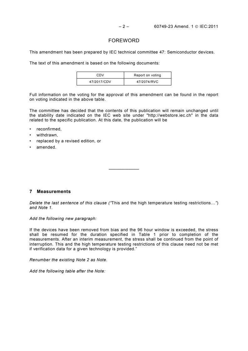 IEC 60749-23:2004/AMD1:2011