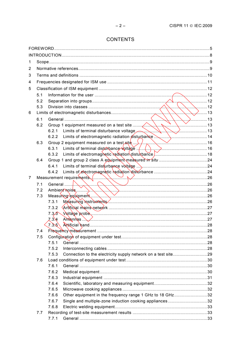 CISPR 11:2009 applies to industrial, scientific and medical electrical equipment operating in the frequency range 0 Hz to 400 GHz and to domestic and similar appliances designed to generate and/or use locally radio-frequency energy. CISPR 11:2009 covers emission requirements related to radio-frequency (RF) disturbances in the frequency range of 9 kHz to 400 GHz. Measurements need only be performed in frequency ranges where limits are specified in Clause 6. For ISM RF applications in the meaning of the definition found in the ITU Radio Regulations (see Definition 3.1), this standard covers emission requirements related to radio-frequency disturbances in the frequency range of 9 kHz to 18 GHz. Requirements for ISM RF lighting apparatus and UV irradiators operating at frequencies within the ISM frequency bands defined by the ITU Radio Regulations are contained in this standard. Equipment covered by other CISPR product and product family emission standards are excluded from the scope of this standard. This fifth edition of CISPR 11 cancels and replaces the fourth edition published in 2003, its Amendment 1 (2004) and Amendment 2 (2006). It constitutes a technical revision. This fifth edition of CISPR 11 got a more transparent structure, introduces another set of particular limits for conducted and radiated disturbances of 'heavy duty' general purpose equipment of class A group 1 with a rated input power in excess of 20 kVA, in accordance with the needs of the industries and refers to the full approach in respect of the measurement instrumentation uncertainty specified in CISPR 16 4 4. Furthermore, any kind of 'legal statements' were removed from the normative main body of this International Standard. It has the status of a Product Family EMC standard in accordance with IEC Guide 107, Electromagnetic compatibility - Guide to the drafting of electromagnetic compatibility publications (2009).