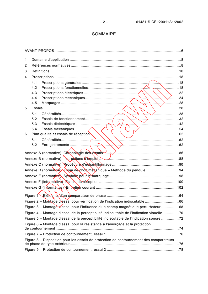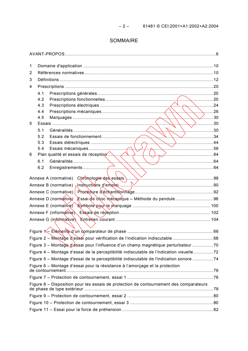 Est applicable aux comparateurs de phase portatifs avec ou sans alimentation incorporée pour utilisation sur réseaux électriques de tensions alternatives de 1 kV à 36 kV et pour des fréquences comprises entre 50 Hz et 60 Hz. La présente norme est applicable aux comparateurs de phase bipolaires ayant un conducteur de raccordement, aux comparateurs de phase bipolaires qui fonctionnent avec une connexion sans fil et aux comparateurs de phase unipolaires qui fonctionnent avec un système de mémoire. La présente norme est applicable aux comparateurs de phase utilisés au contact avec la pièce à essayer, en une seule partie ou en dispositif séparé complété par un perche isolante adaptable couverte par la CEI 60855 ou la CEI 61235.