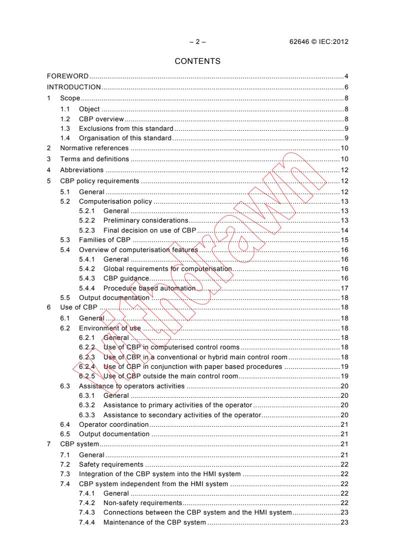 IEC 62646:2012 is a standard published by the International Electrotechnical Commission (IEC). Its full title is "Nuclear power plants - Control rooms - Computer based procedures". This standard covers: IEC 62646:2012 establishes requirements for the whole life cycle of operating procedures that the designer wishes to computerise. It also provides guidance for making decisions about which types of procedures are to be computerised and to what extent. Once computerised, procedures are designated as "Computer Based Procedures" (CBP).