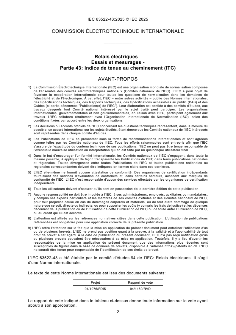 IEC 63522-43:2025 - Relais électriques - Essais et mesurages - Partie 43: Indice de tenue au cheminement (ITC) Released:2. 12. 2025 Isbn:9782832708880