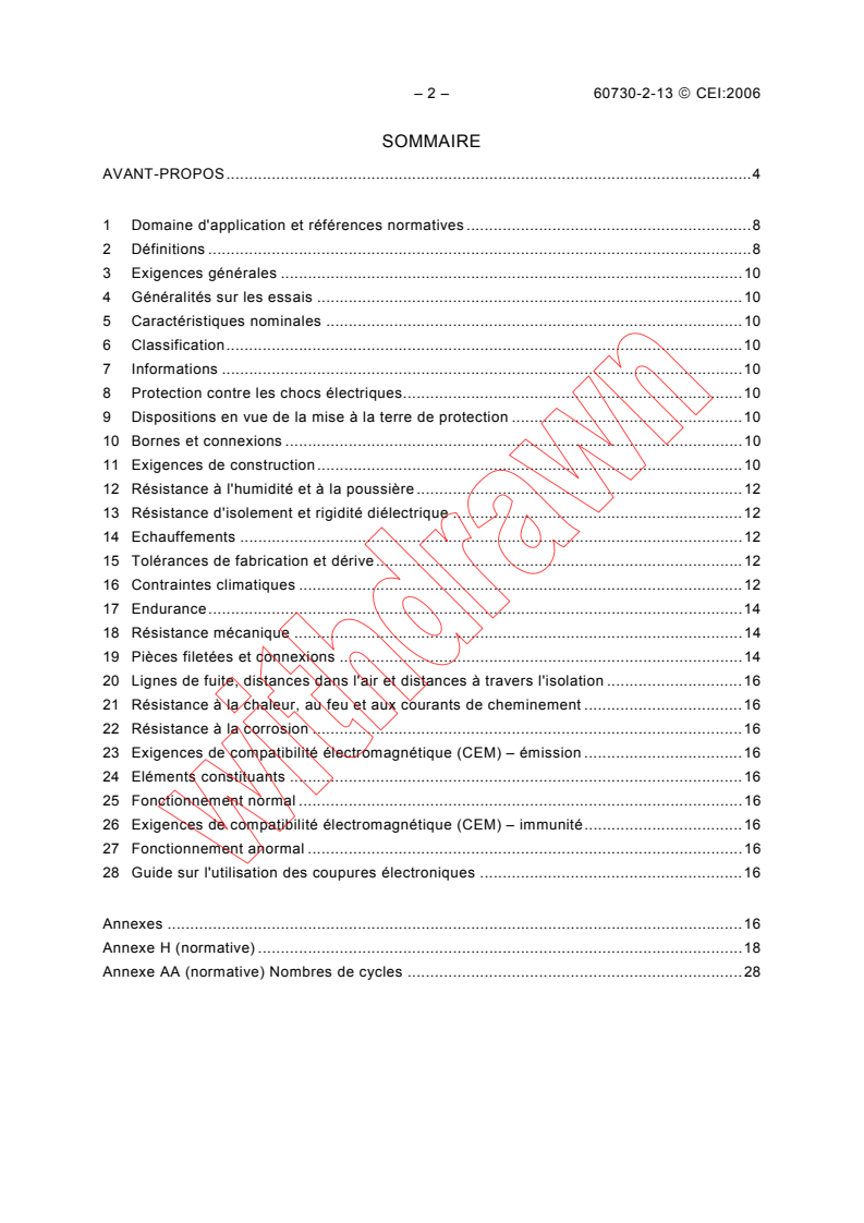 IEC 60730-2-13:2006 is an international standard established by the International Electrotechnical Commission (IEC) that outlines the particular requirements for automatic electrical humidity sensing controls used in household and similar applications. This standard is part 2-13 of the broader IEC 60730 series, which addresses automatic electrical controls for household appliances. It applies to humidity sensing controls integrated within equipment such as heating, ventilation, air-conditioning systems, and other similar devices. The equipment may operate on various energy sources including electricity, gas, oil, solid fuels, and solar thermal energy.