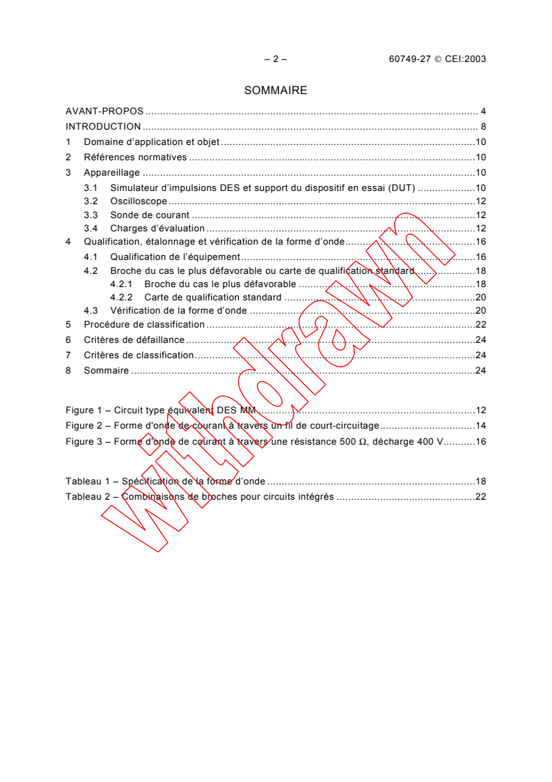 IEC 60749-27:2003 is an international standard published by the International Electrotechnical Commission (IEC) that defines a comprehensive procedure for electrostatic discharge (ESD) sensitivity testing of semiconductor devices using the Machine Model (MM). This part of IEC 60749 series focuses on mechanical and climatic test methods specifically addressing ESD susceptibility caused by exposure to machine model discharges. The main purpose is to ensure reliable, repeatable, and accurate classification of semiconductor devices based on their tolerance to such discharges.