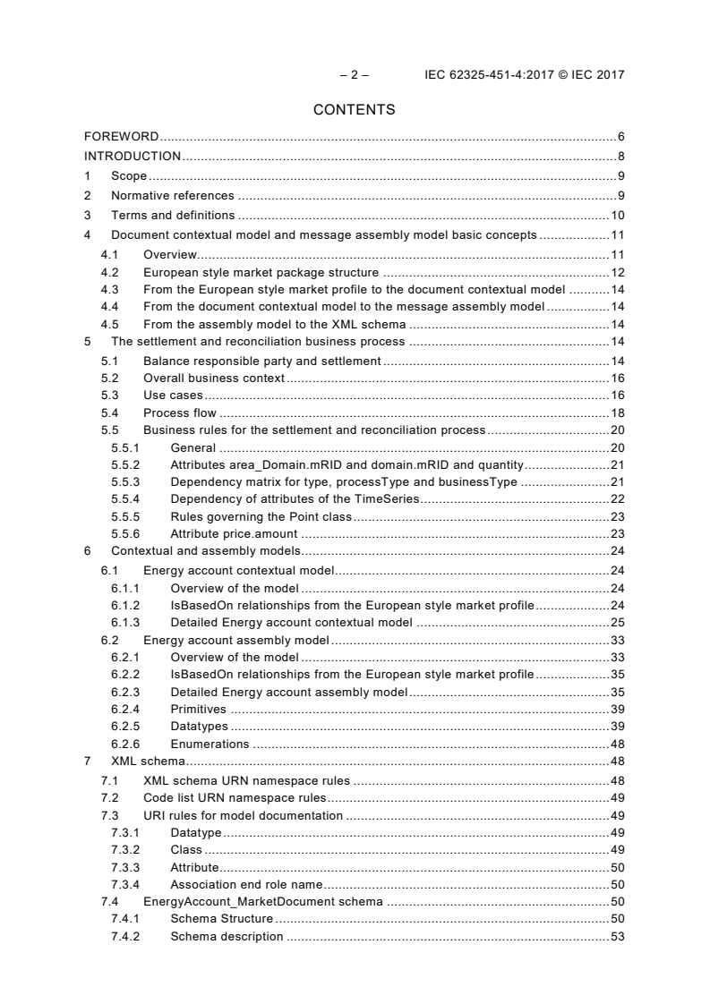 IEC 62325-451-4:2017 spécifie un paquetage pour les processus métier de règlement des écarts et de réconciliation et le modèle contextuel de document, modèle d'assemblage et schéma XML associés à utiliser sur les marchés de style européen.