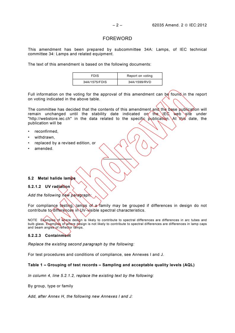 Keywords: IEC 62035 amendment 2, discharge lamps safety, metal halide lamps, containment testing, arc tube rupture, self-shielded lamps, ultraviolet radiation testing, IEC lamp standards, lamp safety specifications, electrical testing of lamps, open luminaires protection.