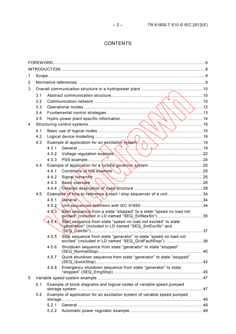 IEC TR 61850-7-510:2012 is a technical report published by the International Electrotechnical Commission (IEC). Its full title is "Communication networks and systems for power utility automation - Part 7-510: Basic communication structure - Hydroelectric power plants - Modelling concepts and guidelines". This standard covers: IEC/TR 61850-7-510:2012(E) provides explanations on how to use the Logical Nodes defined in IEC 61850-7-410 as well as other documents in the IEC 61850 series to model complex control functions in power plants, including variable speed pumped storage power plants. This publication is to be used in conjunction with IEC 61850-7-410 which introduced the general modelling concepts of IEC 61850 to hydroelectric power plants. Keywords: power utility, automation, communication, hydroelectric