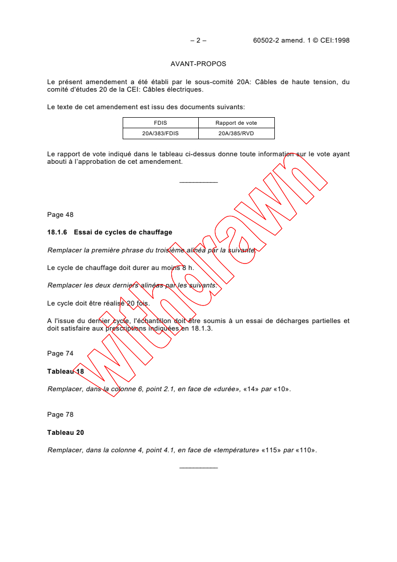 Le présent amendement a été établi par le sous-comité 20A: Câbles de haute tension, du