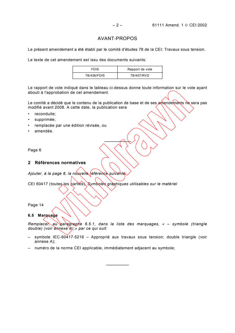 Le présent amendement a été établi par le comité d'études 78 de la CEI: Travaux sous tension.