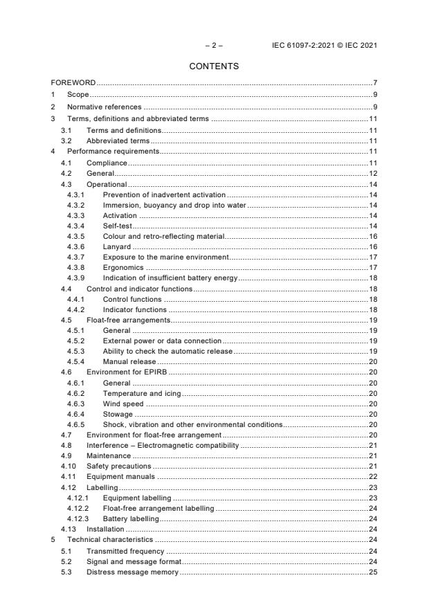 IEC 61097-2:2021(E) specifies the minimum performance requirements, technical characteristics and type-testing requirements of the emergency position-indicating radio beacon used in the Cospas-Sarsat satellite system (EPIRB), as required by the International Convention for Safety of Life at Sea (SOLAS) as amended, and which is associated with IEC 60945. When a requirement in this document is different from the requirements in IEC 60945 or other standards, the requirement in this document takes precedence.