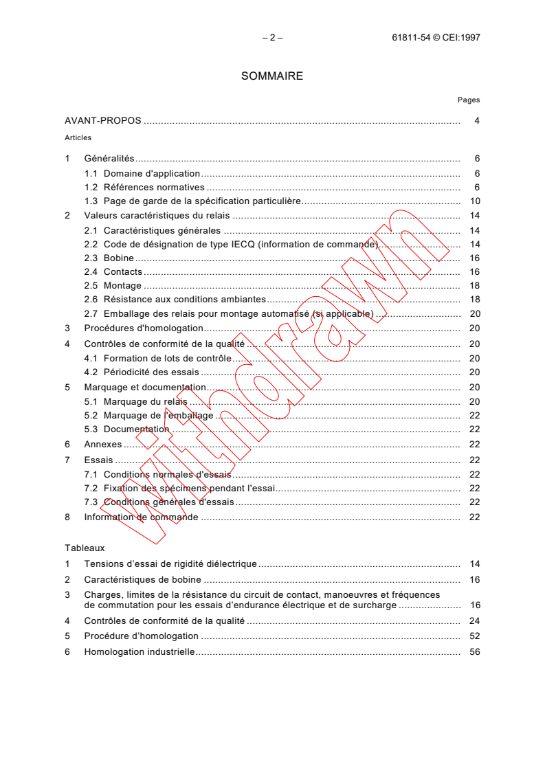 Keywords: IEC 61811-54, electromechanical all-or-nothing relays, telecom relays, assessed quality relays, two change-over contacts, relay specifications, IEC standards, relay quality assurance, telecom switching components, electromechanical relay testing, IEC relay standard.