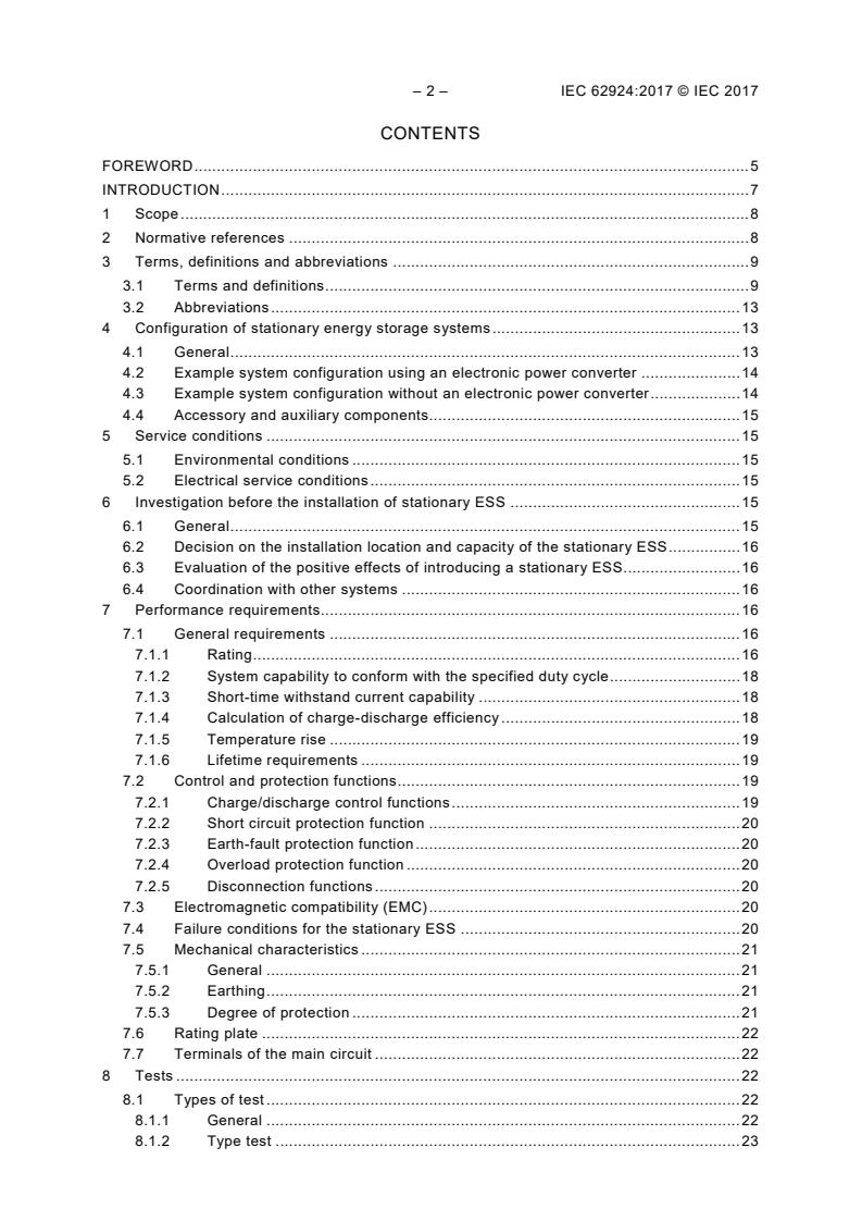 IEC 62924:2017 specifies the requirements and test methods for a stationary energy storage system to be introduced as a trackside installation and used in a power supply network of a DC electrified railway. This system can take electrical energy from the DC power supply network, store the energy, and supply the energy back to the DC power supply network when necessary.