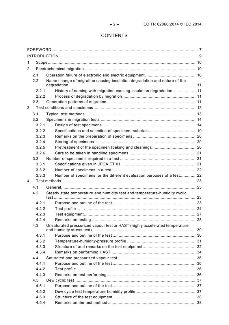 IEC TR 62866:2014 describes the history of the degradation of printed wiring boards caused by electrochemical migration, the measurement method, observation of the failure and remarks to testing in detail.
