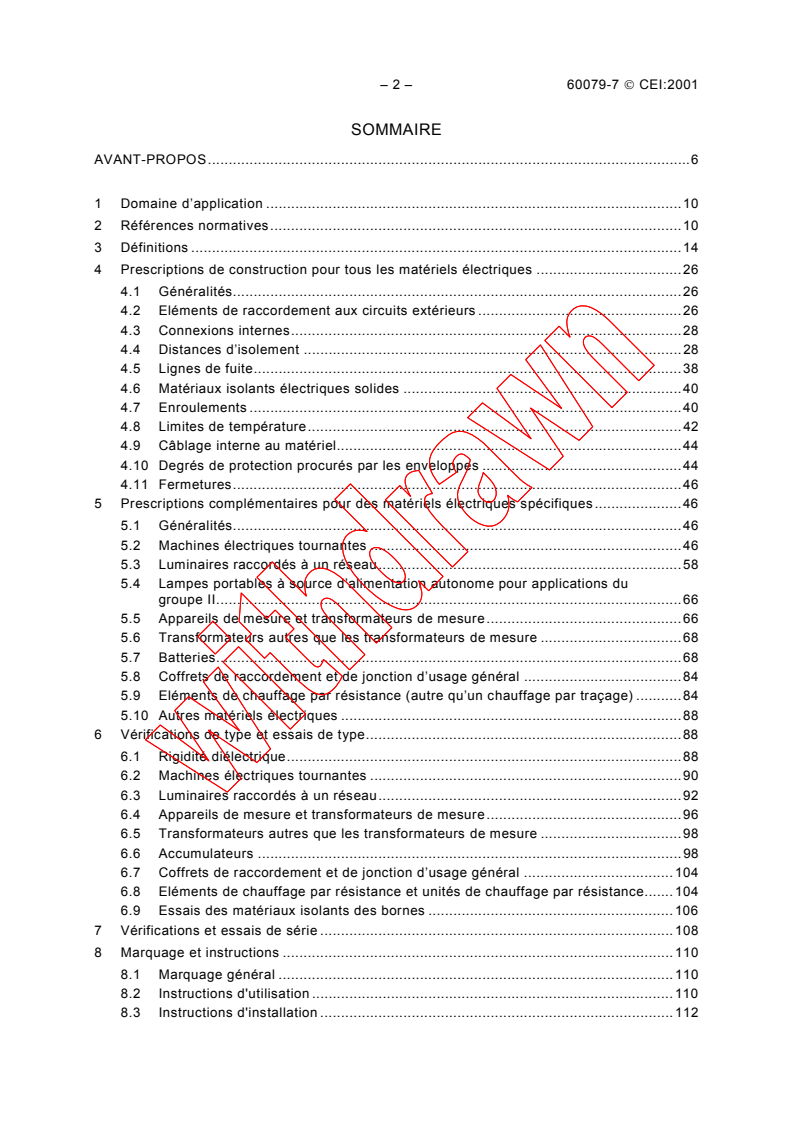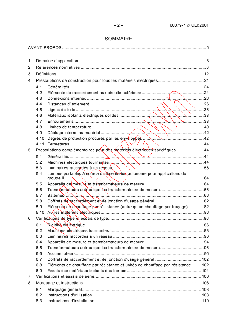 - Supplementary requirements for specific equipment types: rotating machines, luminaires, portable lights, measuring instruments, transformers, batteries, junction boxes, resistance heaters, etc.
