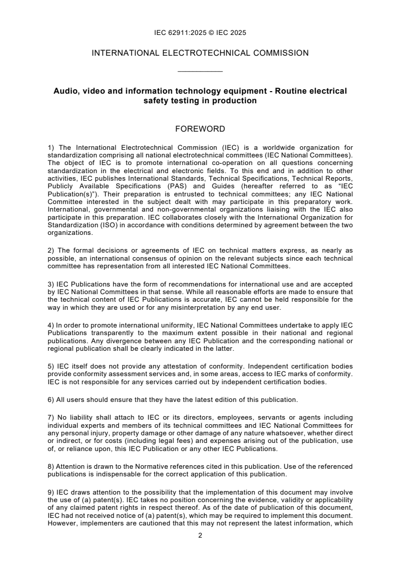IEC 62911:2025 - Audio, video and information technology equipment - Routine electrical safety testing in production/2/2025