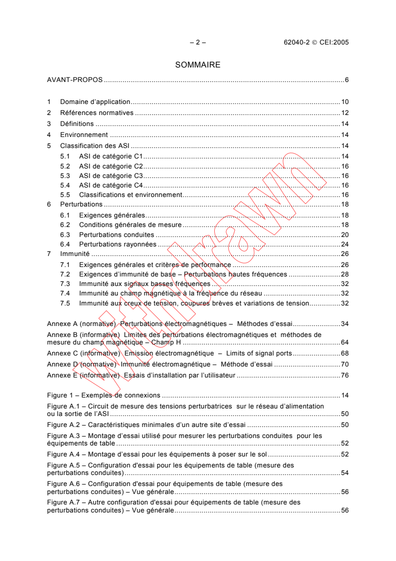 est une norme de produit permettant l'évaluation de conformité CEM des produits de catégories C1, C2 et C3 définis dans la présente partie de la CEI 62040, avant leur commercialisation.Les exigences ont été sélectionnées afin d'assurer un niveau de compatibilité électromagnétique (CEM) adéquat pour les ASI destinées à un environnement domestique ou industriel.