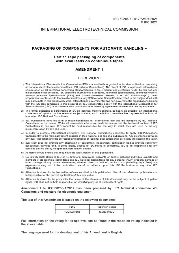 Keywords: IEC 60286-1 amendment, tape packaging, axial lead components, automated handling, electronic component packaging, reel packaging, leader tape, component tape dimensions, IEC standards for packaging, electronic manufacturing standards.