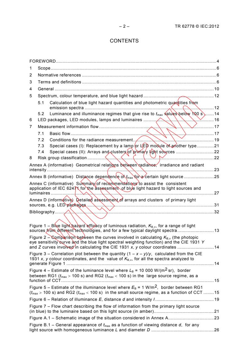 IEC/TR 62778:2012 brings clarification and guidance concerning the assessment of blue light hazard of all lighting products which have the main emission in the visible spectrum (380 nm to 780 nm). By optical and spectral calculations, it is shown what the photobiological safety measurements as described in IEC 62471 tell us about the product and, if this product is intended to be a component in a higher level lighting product, how this information can be transferred from the component product (e.g. the LED package, the LED module, or the lamp) to the higher level lighting product (e.g., the luminaire).