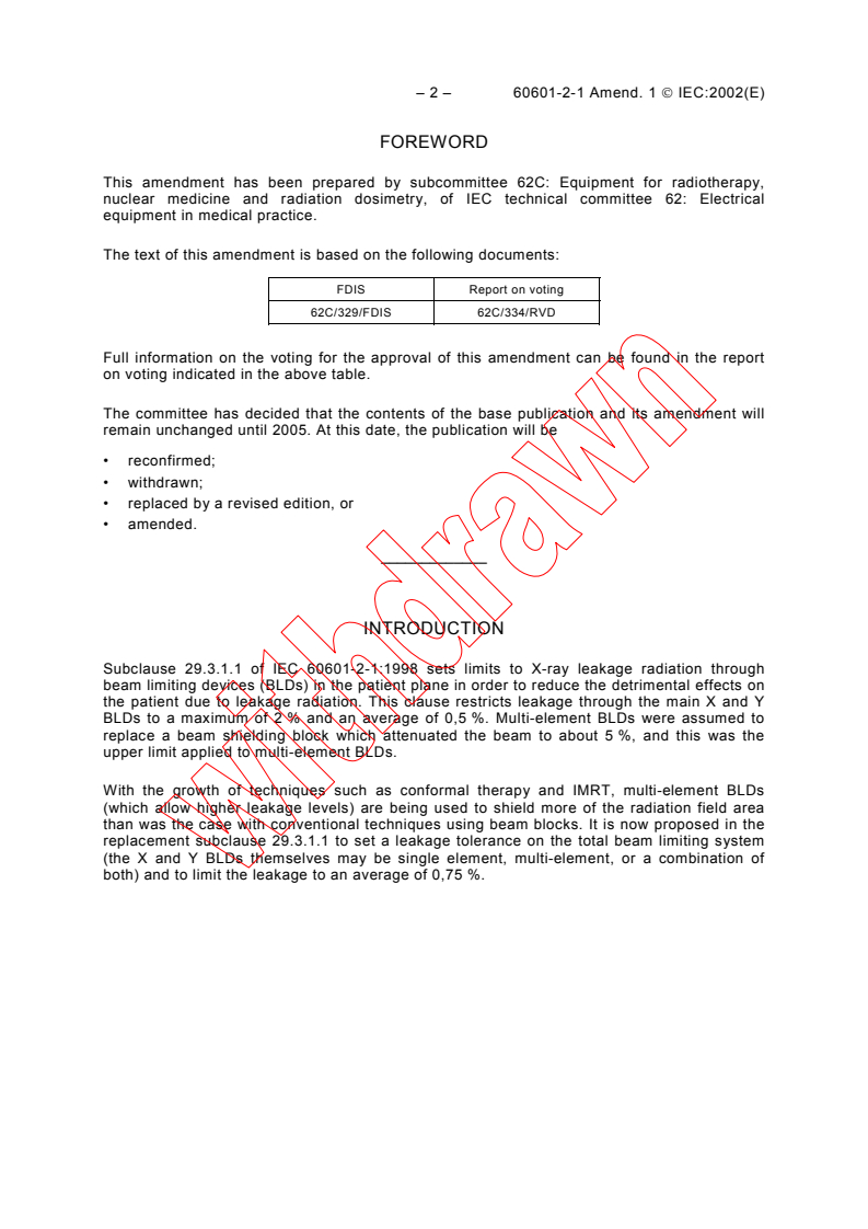 This amendment has been prepared by subcommittee 62C: Equipment for radiotherapy,