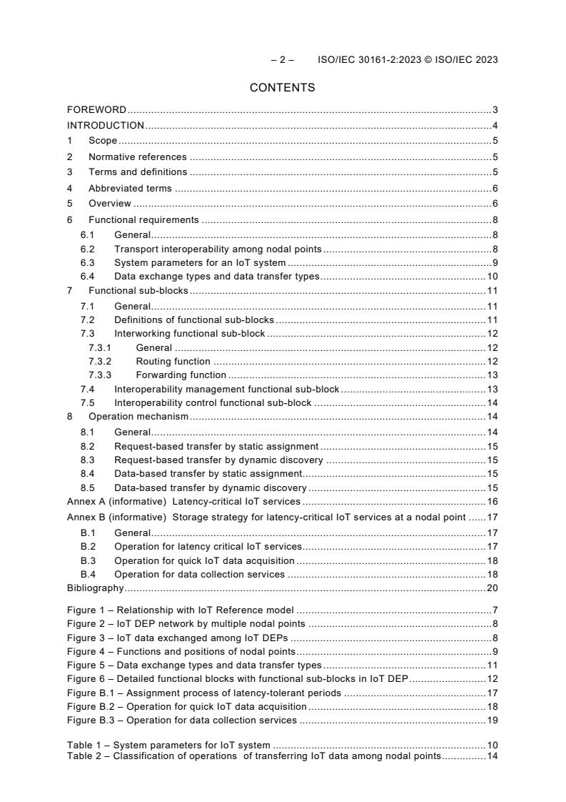 Keywords: ISO/IEC 30161-2:2023, IoT DEP, Internet of Things, transport interoperability, nodal points, data exchange platform, routing, forwarding, low latency, dynamic discovery, static assignment.