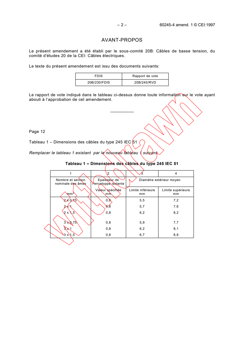 Le présent amendement a été établi par le sous-comité 20B: Câbles de basse tension, du