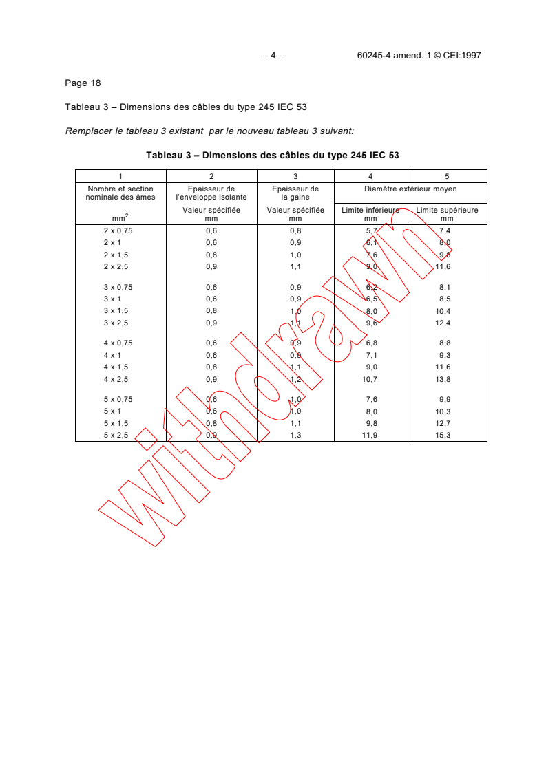 Tableau 3 – Dimensions des câbles du type 245 IEC 53