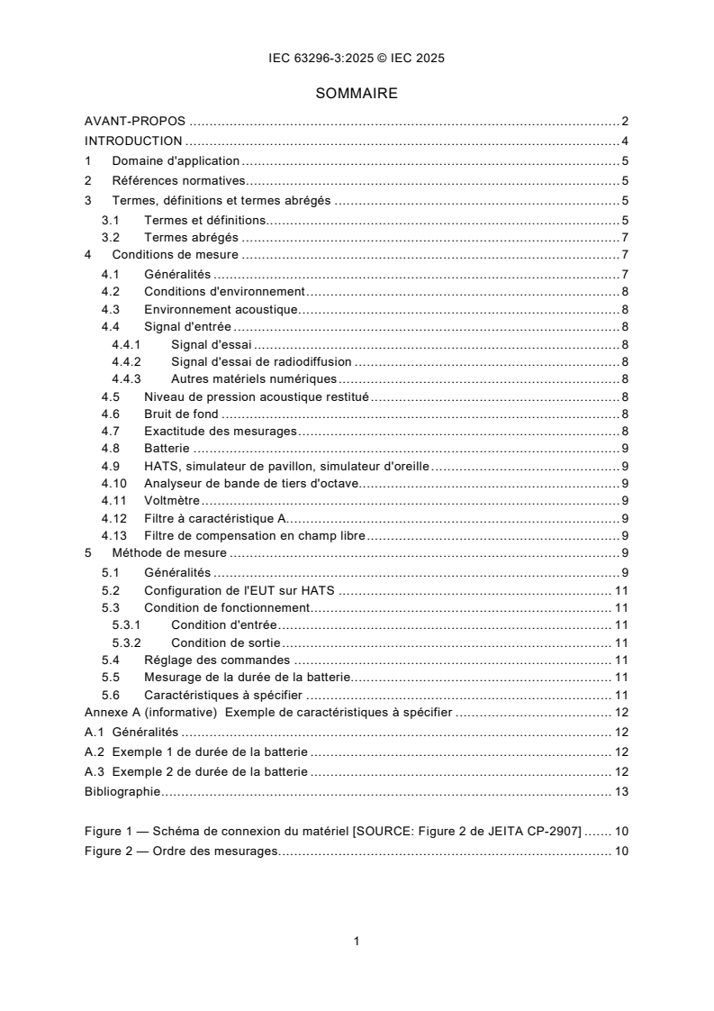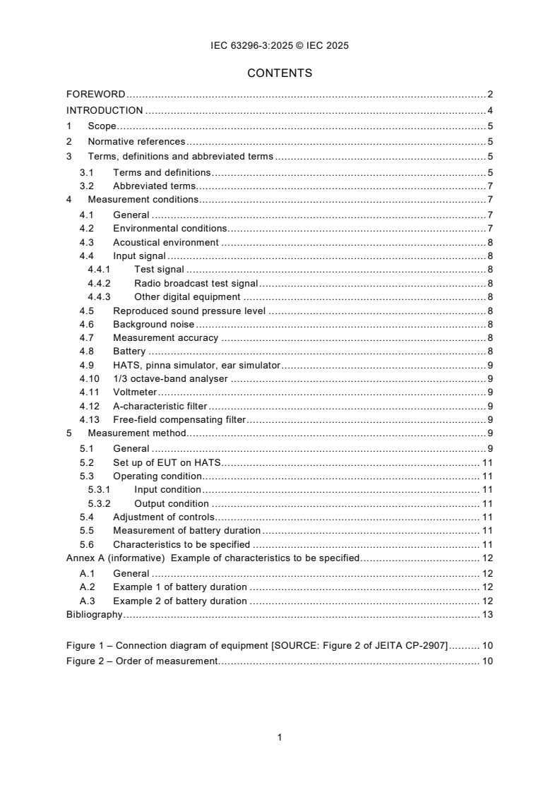 Keywords: IEC 63296-3:2025, wearable powered loudspeaker, battery duration, battery life measurement, HATS, sound pressure level, portable multimedia equipment.