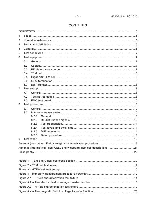 IEC 62132-2:2010 specifies a method for measuring the immunity of an integrated circuit (IC) to radio frequency (RF) radiated electromagnetic disturbances. The frequency range of this method is from 150 kHz to 1 GHz, or as limited by the characteristics of the TEM cell.