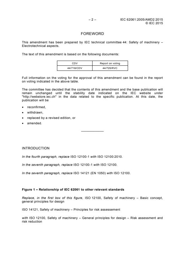 IEC 62061:2005/AMD2:2015 has the following relationships with other standards: It is inter standard links to IEC 62061:2005, IEC 62061:2021. Understanding these relationships helps ensure you are using the most current and applicable version of the standard.
