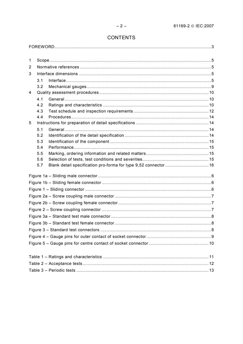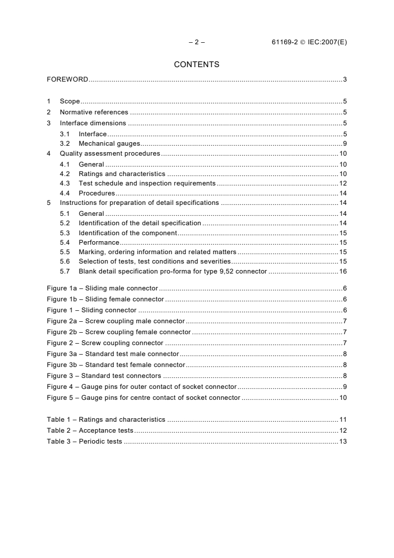 IEC 61169-2:2007 is the IEC sectional specification for radio-frequency (RF) coaxial connectors of type 9,52 (9.52 mm). It defines the rules and information for preparing detail specifications (DS) for these connectors, including interface dimensions for general-purpose grade 2 parts, dimensional data for standard test connectors (grade 0), gauging procedures and the mandatory tests taken from IEC 61169-1. A key update in this edition is that the maximum frequency is now 3 GHz.