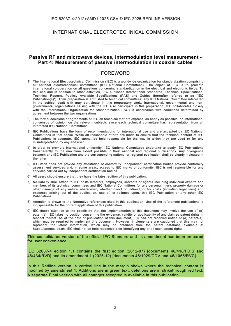 IEC 62037-4:2012+AMD1:2025 CSV - Passive RF and microwave devices, intermodulation level measurement - Part 4: Measurement of passive intermodulation in coaxial cables Released:2. 12. 2025 Isbn:9782832709221