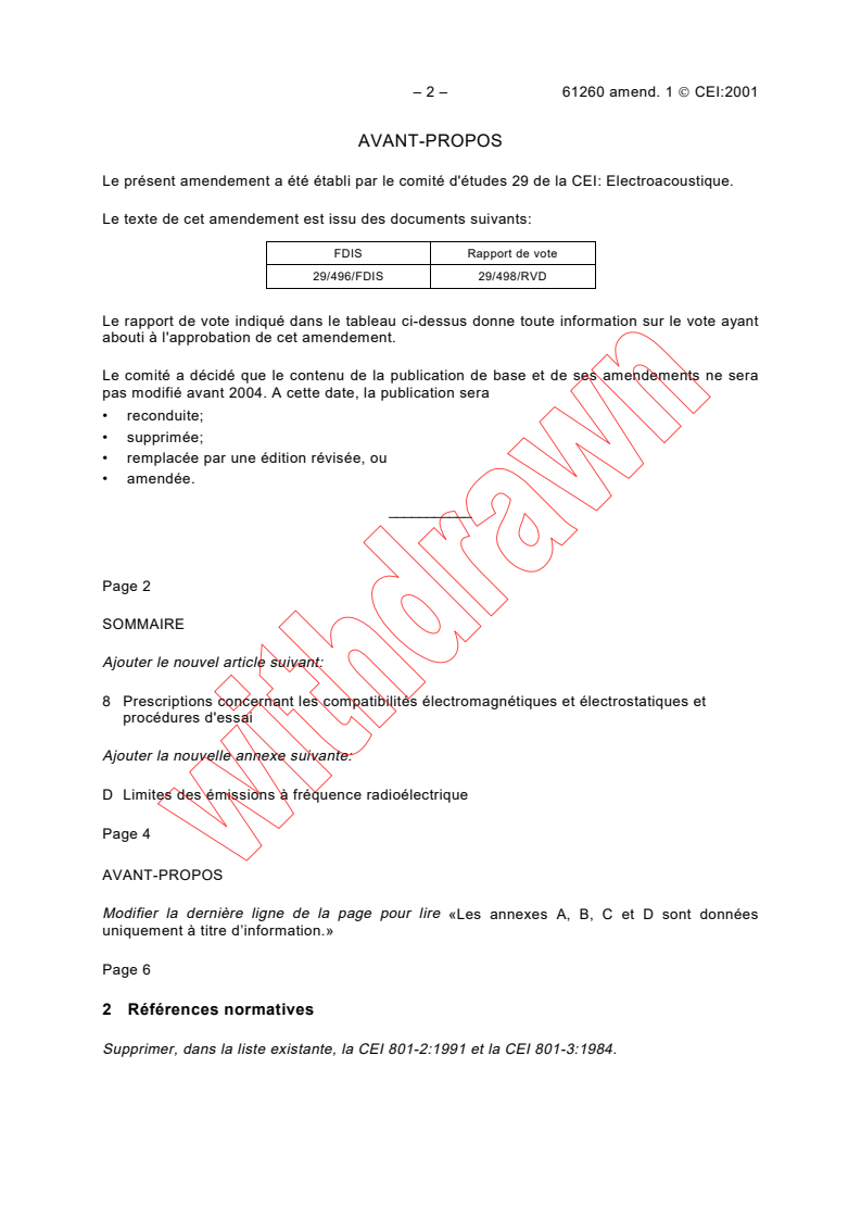 Le présent amendement a été établi par le comité d'études 29 de la CEI: Electroacoustique.