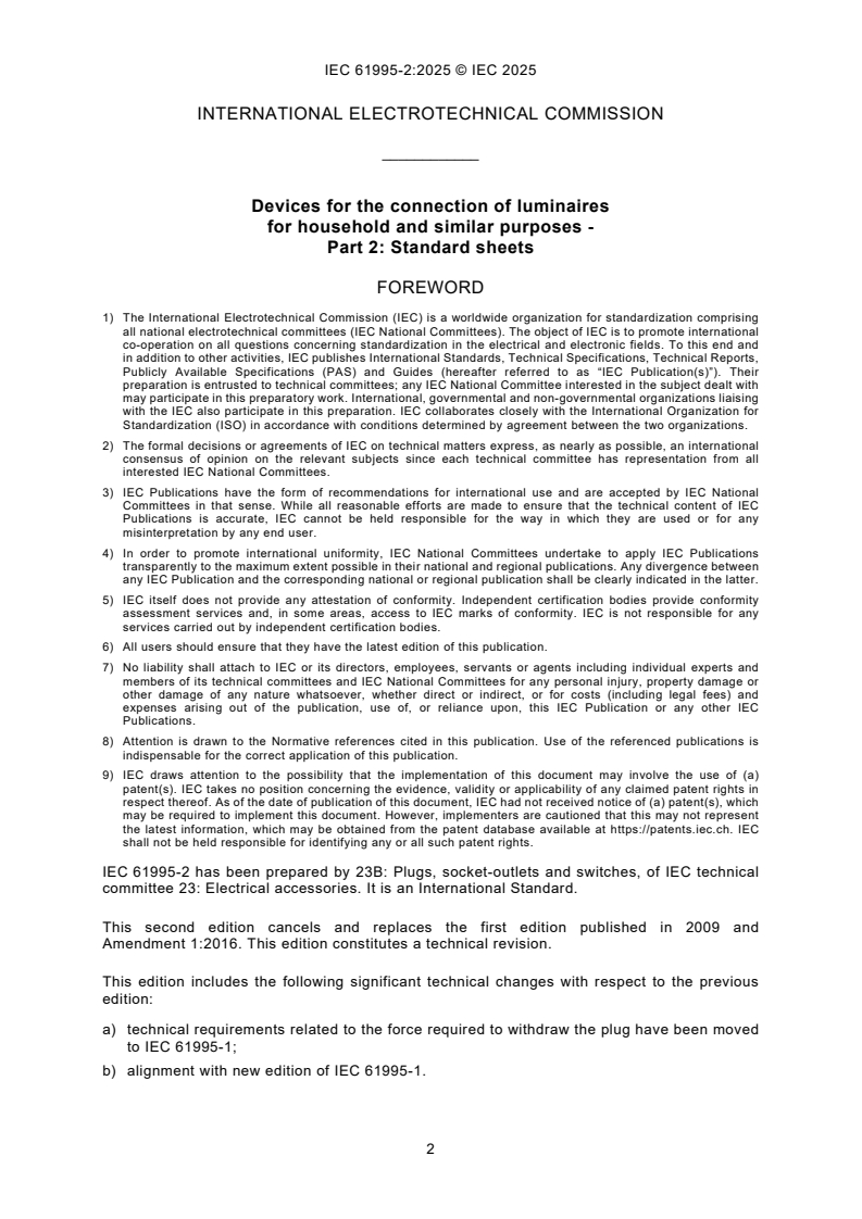 IEC 61995-2 has been prepared by 23B: Plugs, socket-outlets and switches, of IEC technical