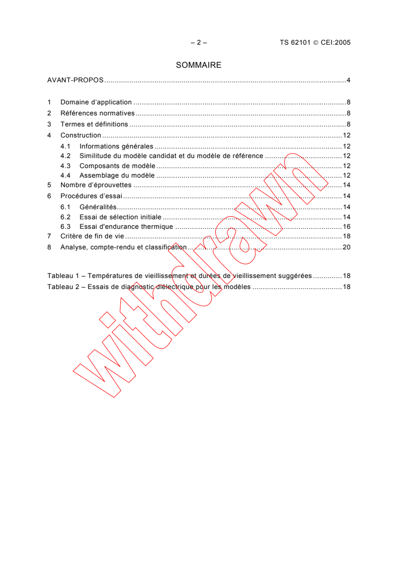 S'applique aux systèmes d'isolation électriques, spécifie une procédure d'évaluation électrique et thermique à court terme - applicable aux dispositifs de tension d'alimentation jusqu'à 1 000 V (impulsion en courant continu/courant alternatif), - utilisant un modèle de bobine à enroulement à fil; ce modèle peut être utilisé pour des applications à enroulement à fil, telles que les transformateurs, les bobines d'arrêt, les ballasts, les bobines d'inductance, les convertisseurs à ferrite, etc., - avec une durée de vie minimale de 1 500 h à la température de vieillissement la plus basse, - pour les produits qui ne sont normalement pas soumis aux vibrations. Le modèle doit contenir tous les composants du produit final afin de déterminer l'interaction chimique dans des conditions de vieillissement thermique. Aucune modification n'est autorisée car ce programme de vieillissement est conçu pour évaluer l'ensemble du SIE.