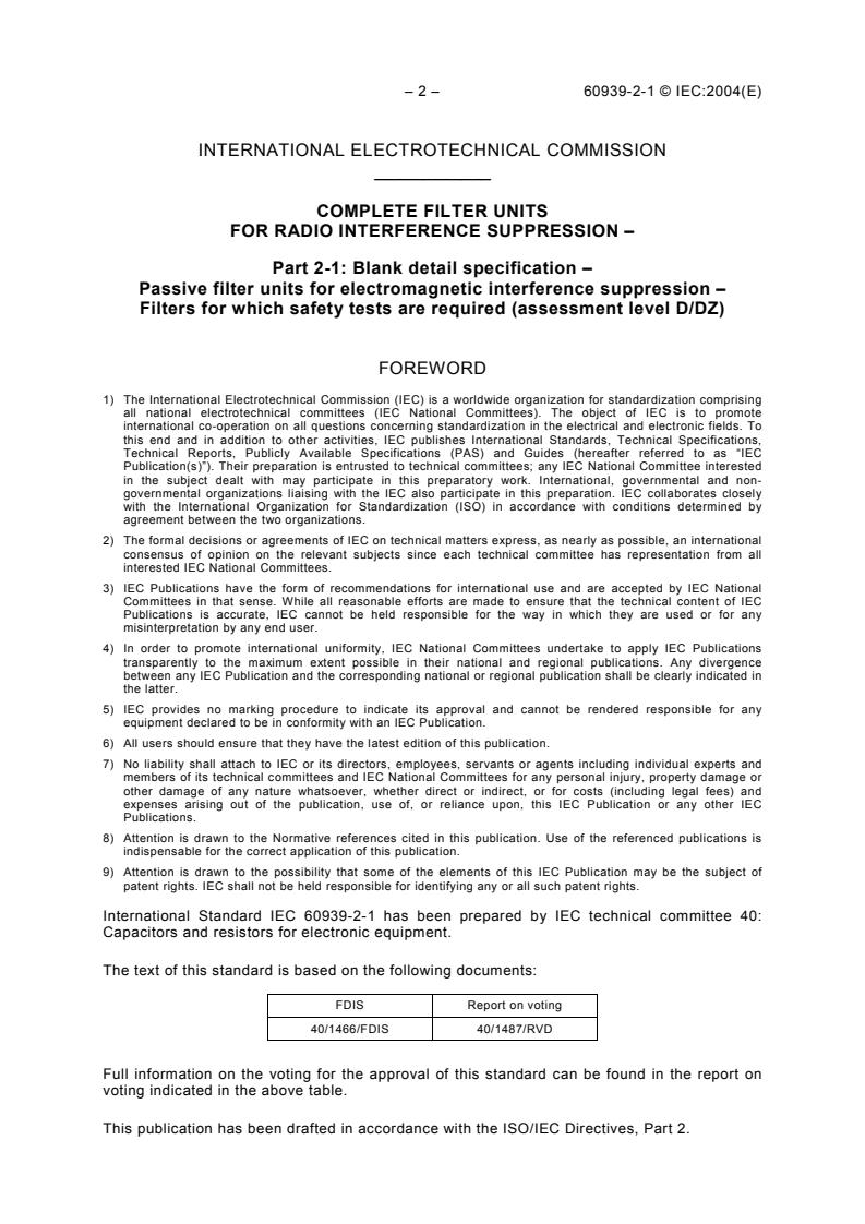 Keywords: IEC 60939-2-1, complete filter units, radio interference suppression, passive filter units, electromagnetic interference suppression, assessment level D, assessment level DZ, blank detail specification, IECQ, insertion loss, insulation resistance, voltage proof, solderability, sampling plan.