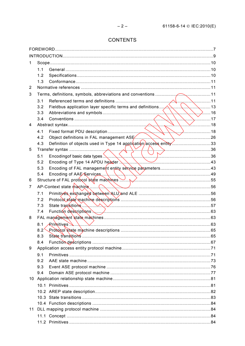 IEC 61158-6-14:2010(E) specifies the protocol of the Type 14 fieldbus application layer, in conformance with the OSI Basic Reference Model (ISO/IEC 7498-1) and the OSI application layer structure (ISO/IEC 9545). It defines the protocol provided to define the wire-representation of the service primitives defined in IEC 61158-5-14:2010, and the externally visible behavior associated with their transfer. This second edition cancels and replaces the first edition published in 2007 and constitutes a technical revision. The main changes with respect to the previous edition are: