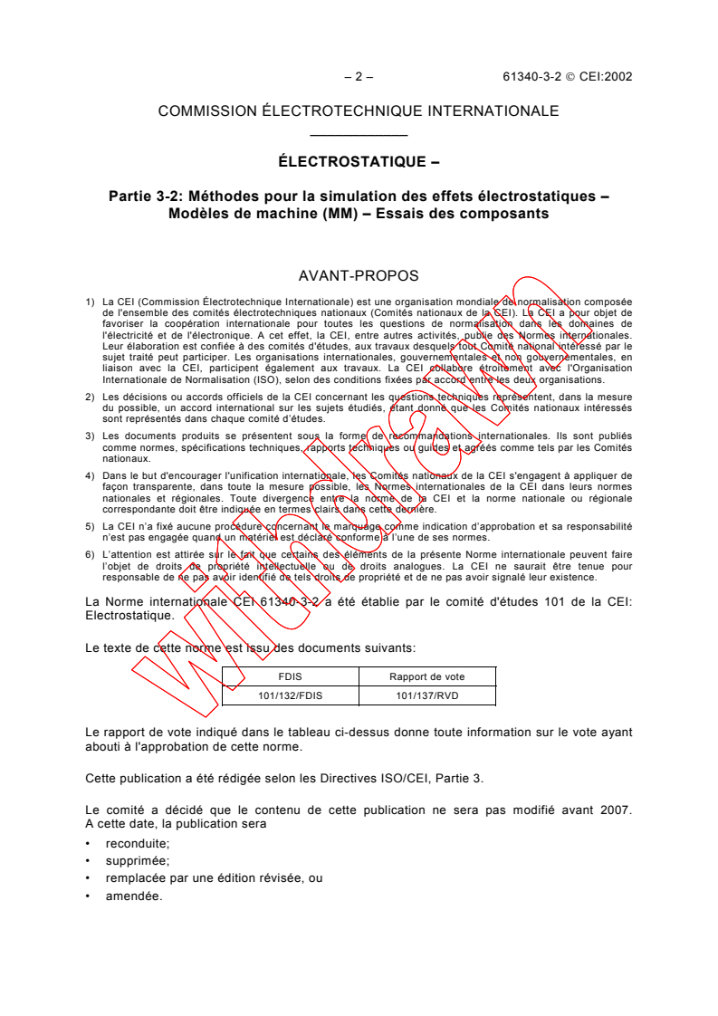 IEC 61340-3-2:2002 is a standard published by the International Electrotechnical Commission (IEC). Its full title is "Electrostatics - Part 3-2: Methods for simulation of electrostatic effects - Machine model (MM) - Component testing". This standard covers: Describes the discharge current waveforms used to define the MM and the basic equipment requirements used to develop these waveforms. Test parameters are defined for testing and classifying the electrostatic discharge (ESD) sensitivity of non-powered devices to the MM. The purpose of this standard is to establish a test model that will replicate MM failures and will define the MM transient current discharge waveform and all necessary test parameters to ensure reliable, reproducible test results. Reproducible data will allow accurate comparisons of MM ESD sensitivity levels.