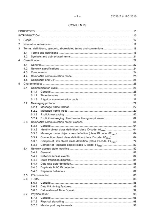 IEC 62026-7:2010 is a standard published by the International Electrotechnical Commission (IEC). Its full title is "Low-voltage switchgear and controlgear - Controller-device interfaces (CDIs) - Part 7: CompoNet". This standard covers: IEC 62026-7:2010 specifies an interface system providing bit-level and word-level communication between a controller and control circuit devices such as sensors, actuators, and switching elements. The interface system uses cabling with round or flat profiles containing a two conductor signalling pair and optionally a two conductor power supply pair. This part establishes requirements for the interchangeability of components with such interfaces. This standard cancels and replaces IEC/PAS 62026-7 published in 2009. This first edition constitutes a general technical revision with clarifications only and with no significant change in the technology.