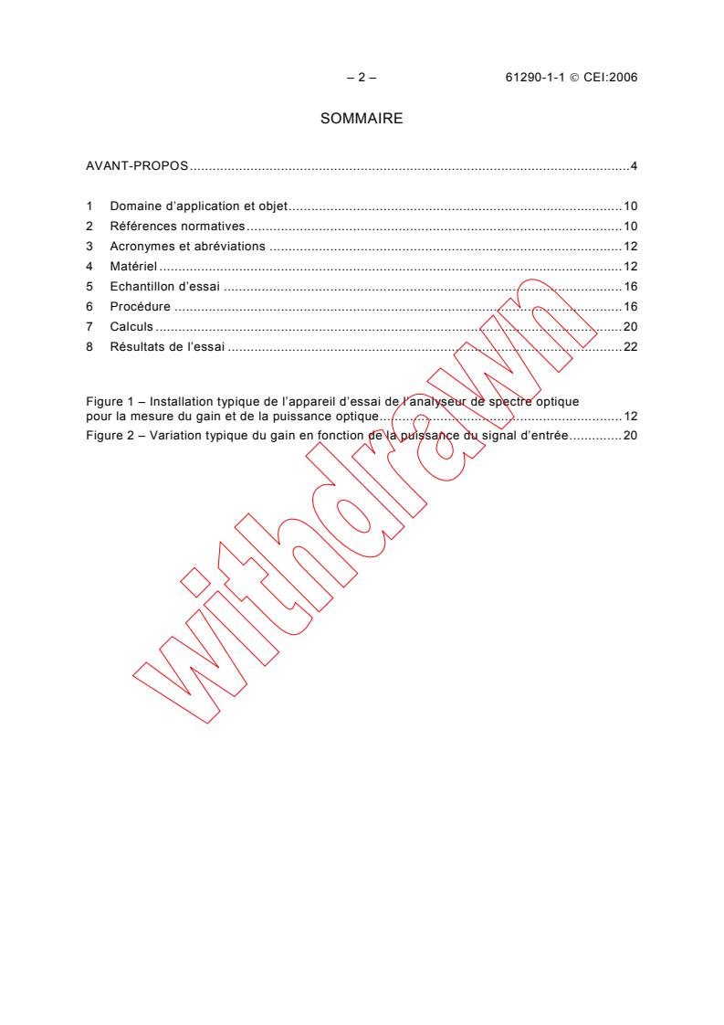 IEC 61290-1-1:2006 is a standard published by the International Electrotechnical Commission (IEC). Its full title is "Optical amplifiers - Test methods - Part 1-1: Power and gain parameters - Optical spectrum analyzer method". This standard covers: This International Standard applies to all commercially available optical amplifiers (OAs) and optically amplified modules. It applies to OAs using optically pumped fibers (OFAs based on either rare-earth doped fibers or on the Raman effect), semiconductor OAs (SOAs) and waveguides (POWAs).