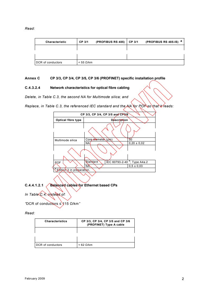 Corrigendum 1 - Industrial communication networks - Profiles - Part 5-3: Installation of fieldbuses - Installation profiles for CPF 3