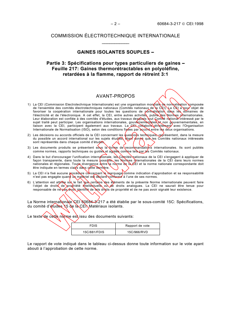 IEC 60684-3-217:1998 - Flexible insulating sleeving - Part 3: Specifications for individual types of sleeving - Sheet 217: Heat-shrinkable polyolefin sleeving, flame retarded, shrink ratio 3:1 Released:5/29/1998 Isbn:2831843618