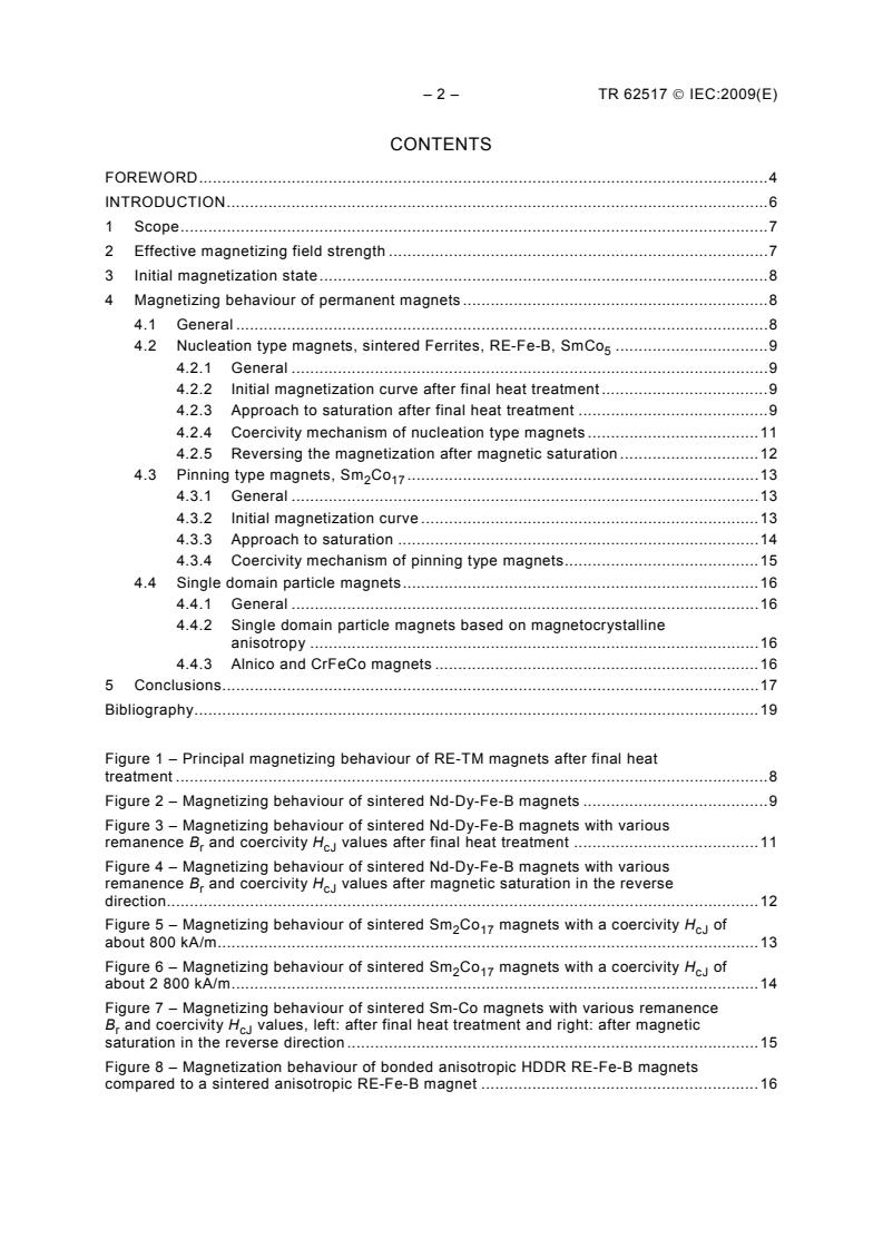 Keywords: IEC TR 62517:2009, magnetizing behaviour, permanent magnets, coercivity mechanisms, nucleation, pinning, single domain, internal magnetizing field, saturation, RE‑Fe‑B, SmCo, ferrite, Alnico, pulse magnetization.
