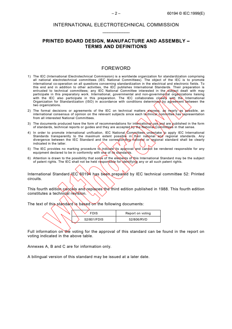 IEC 60194:1999 is a standard published by the International Electrotechnical Commission (IEC). Its full title is "Printed board design, manufacture and assembly - Terms and definitions". This standard covers: Defines the terminology used in the field of printed circuit boards and printed circuit board assembly products.