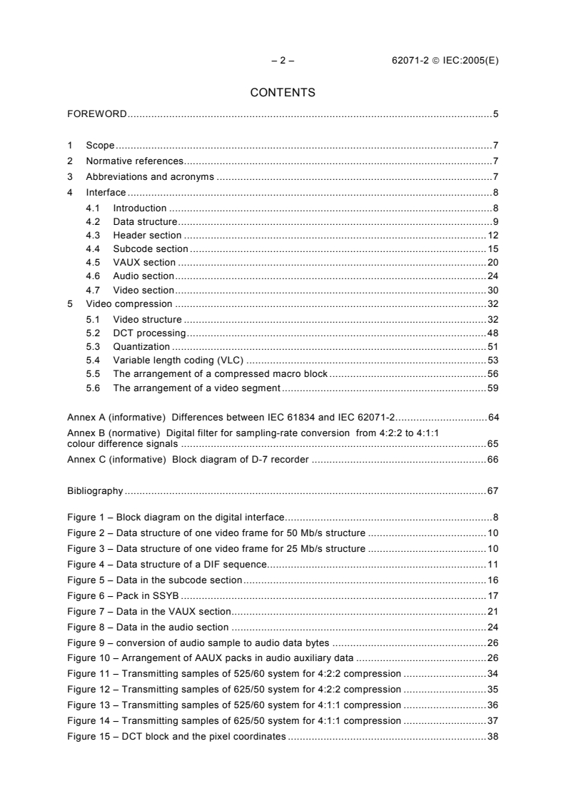 - Annexes: Normative digital filter for sampling-rate conversion from 4:2:2 to 4:1:1, differences versus IEC 61834 and a D-7 recorder block diagram.