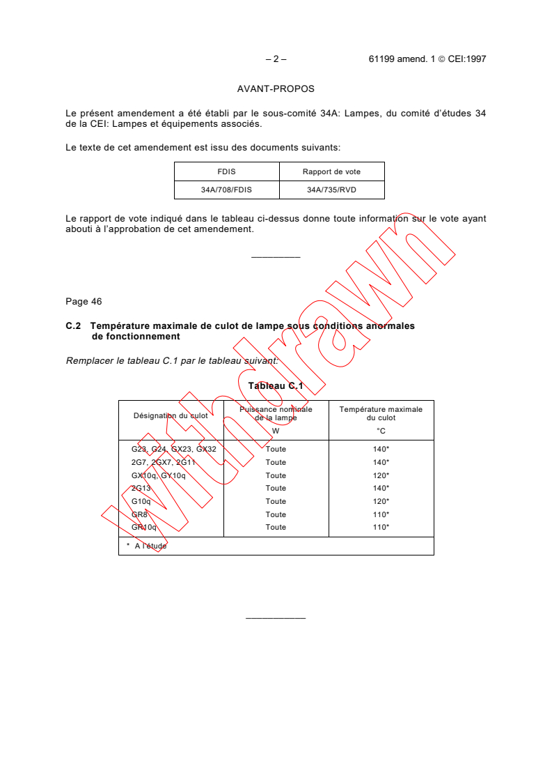 Le présent amendement a été établi par le sous-comité 34A: Lampes, du comité d’études 34