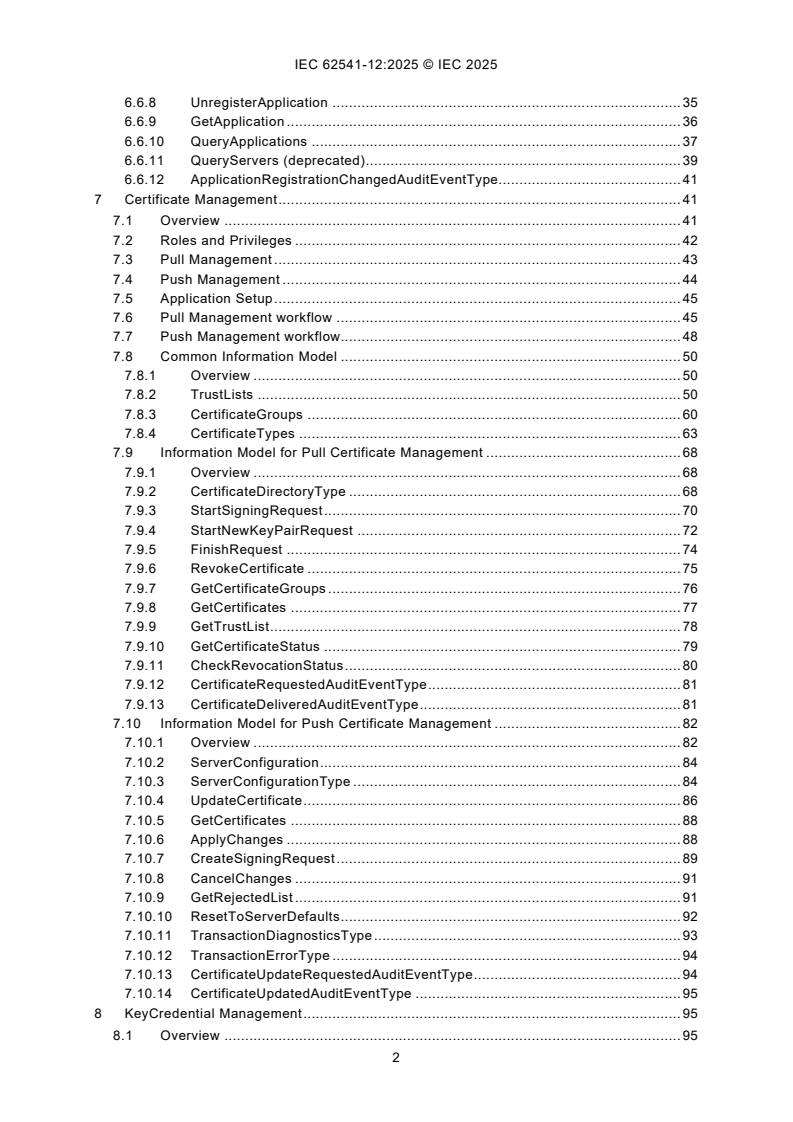 - Certificate management: Information models and workflows for pull and push certificate management, trust lists, certificate groups and revocation/check processes.