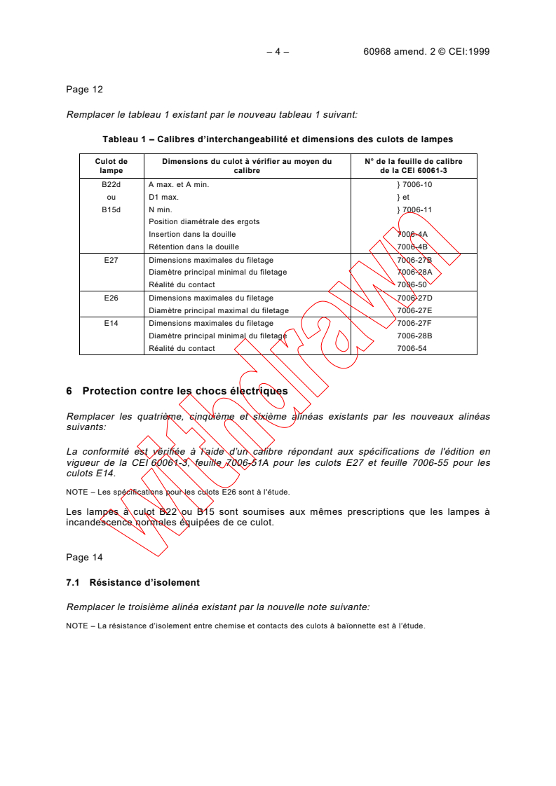 Keywords: IEC 60968 amendment, self-ballasted lamps safety, lamp cap dimensions, electric shock protection, lamp torque resistance, lamp temperature rise, general lighting safety standards, IEC lamp standards, electrical insulation in lamps