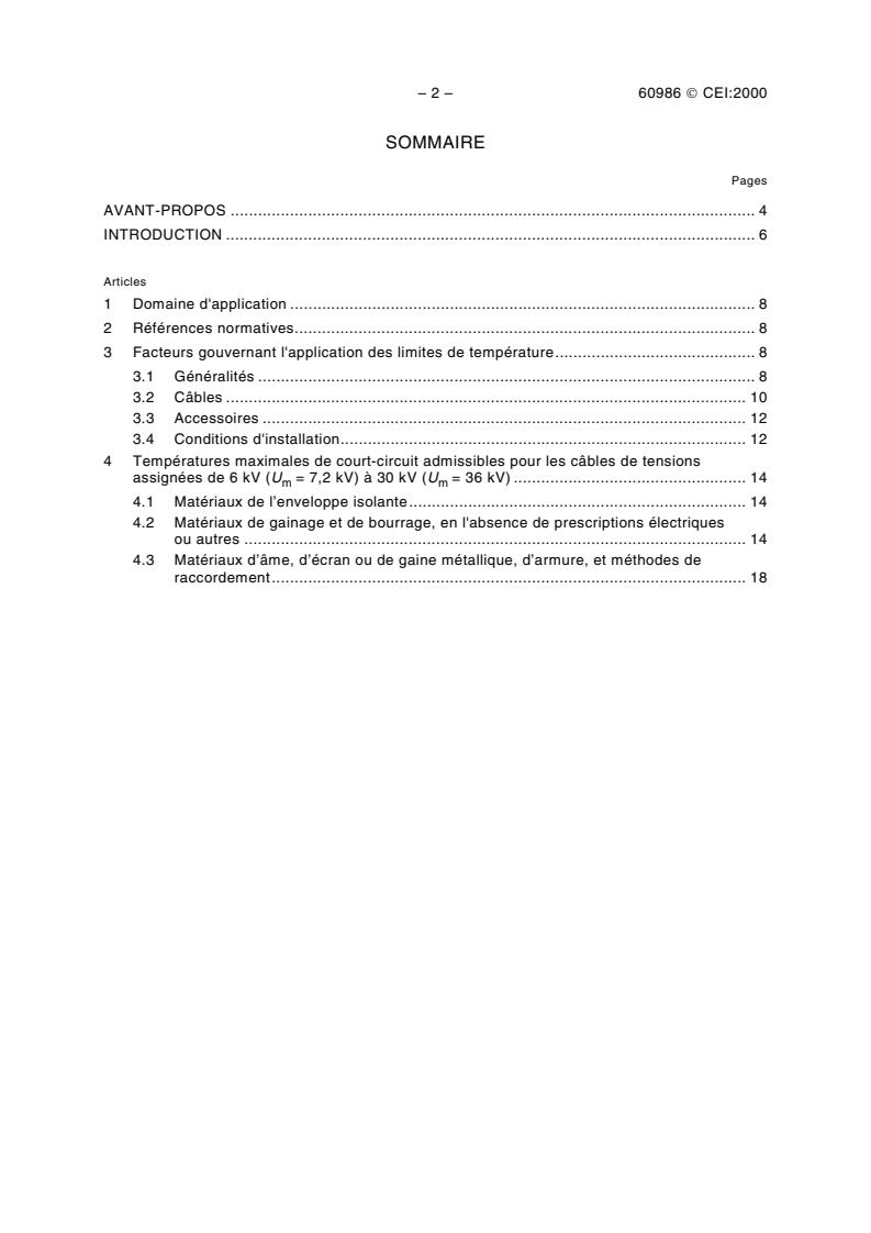 IEC 60986:2000 is a standard published by the International Electrotechnical Commission (IEC). Its full title is "Short-circuit temperature limits of electric cables with rated voltages from 6 kV (<i>U</i><sub>m</sub> = 7,2 kV) up to 30 kV (<i>U</i><sub>m</sub> = 36 kV)". This standard covers: Gives guidance on the short-circuit maximum temperature limits of electric cables having rated voltages from 6 kV (Um = 7,2 kV) up to 30 kV (Um = 36 kV), with regard to the following: - insulating materials; - oversheath and bedding materials; - conductor and metallic sheath materials and methods of connection. The design of accessories and the influence of the installation conditions on the temperature limits are taken into consideration.